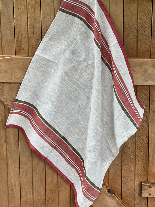 Scarlet Stripe Linen Teatowel